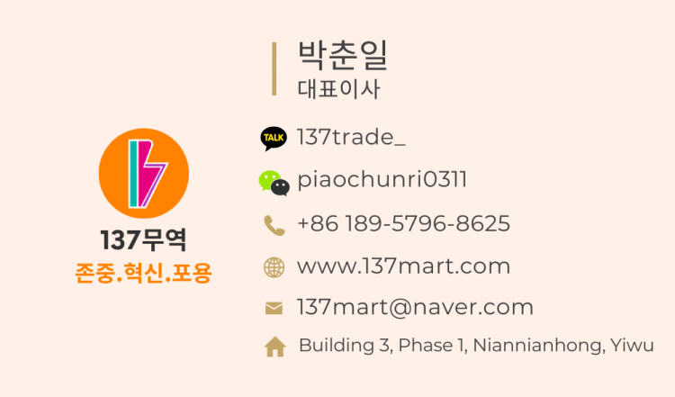 20년 한중무역 노하우 및 풍부한 공장자원 보유한 에이전시 137무역 입니다.